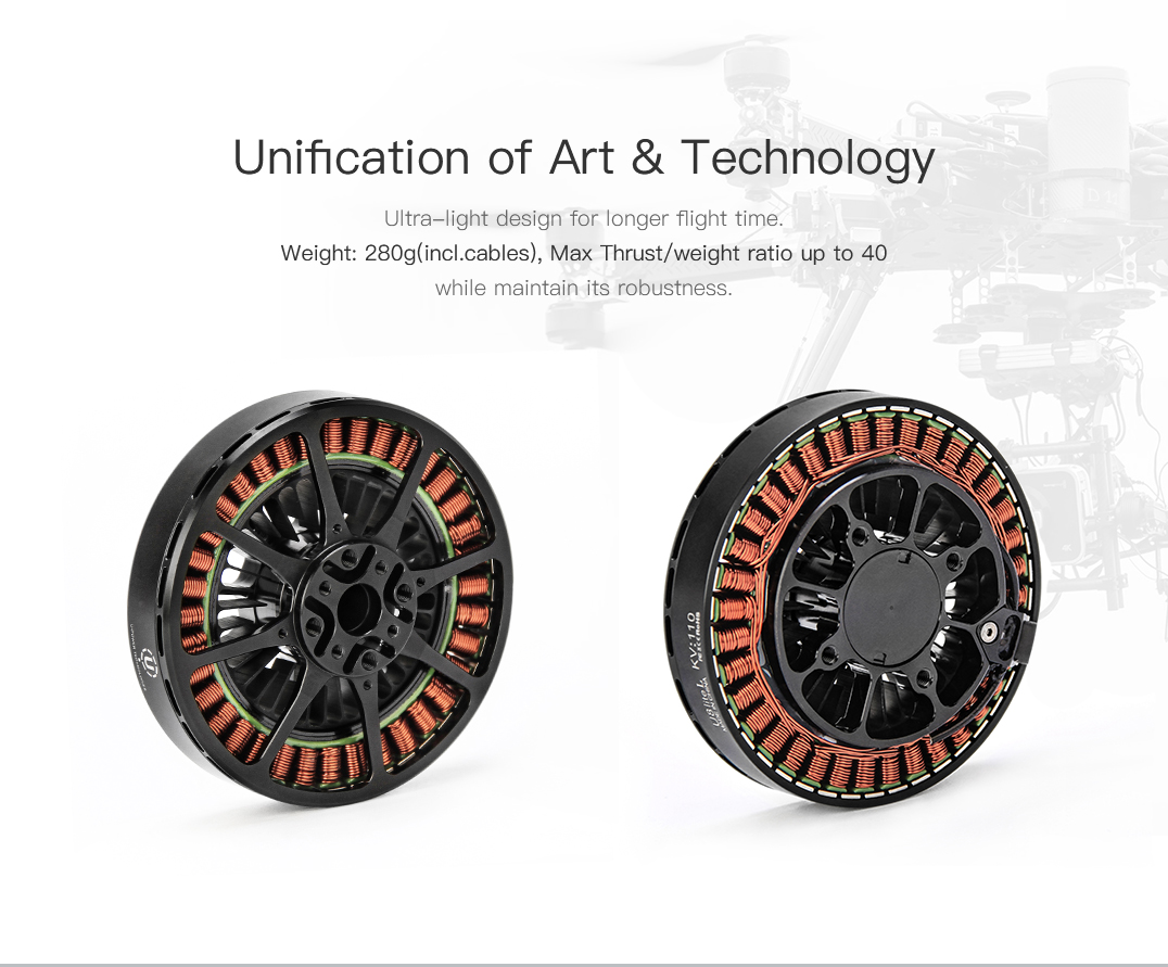 Lightweight design allows you to fly longer, Industrial-grade dustproof and waterproof and anti-aging, greatly extends the working life of the motor. Curved magnets with precise tolerance control and rational magnet space for optimal motor magnetic circuit help improve motor performance. The motor uses imported customized bearings to extend the service life of the motor and ensure smooth flight and longer flight time.