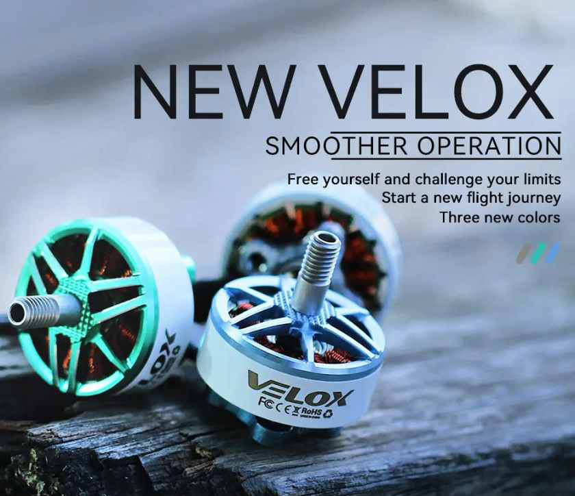 Velox系列入门级电机为FPV新手量身打造,V2207、V2306等型号价格亲民,性能稳定,安装简便,非常适合初学和练习。即使是入门级,也配备高品质轴承和多KV选择。