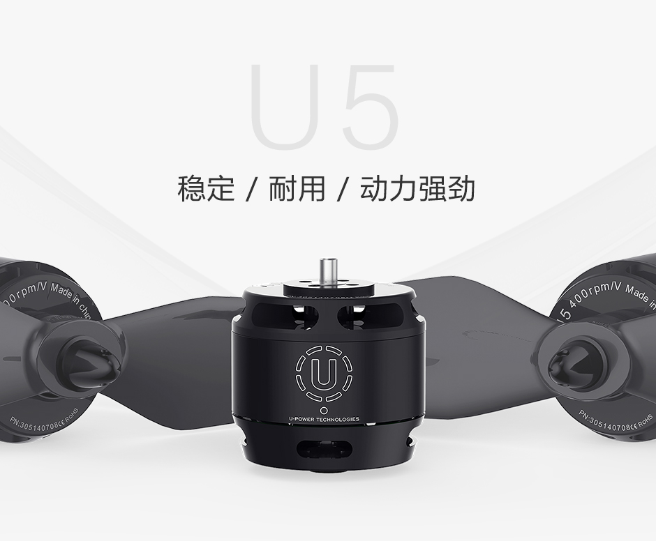 T-MOTOR U5 多旋翼直流无刷电机专为航拍、摄影、送货服务和农业植保等8-12公斤级别大推力无人机设计。采用独特的侧孔设计,加快气流流动,使电机散热效率提高2.5倍;使用抗短路性能更好的耐高温180℃进口无氧铜线精密绕线,搭配0.2mm高规格进口矽钢片,保证满槽率,降低电机发热,减小涡流,力求提高每一个百分点的效率;使用进口高品质大轴承,运转更顺畅,噪音更小,负载无故障工作时间高达1600小时。