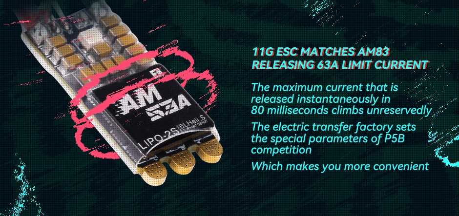 2.11g ESC matches AM83 motor releasing 63A limit current.