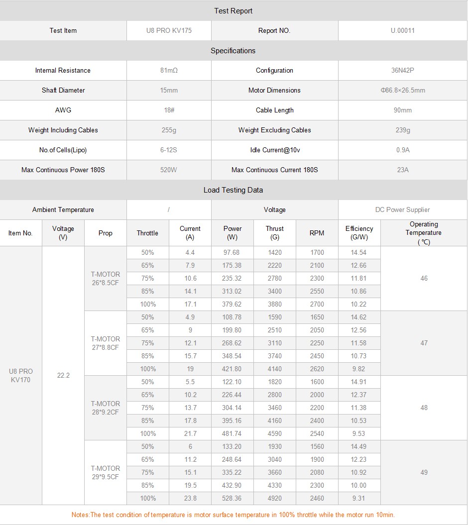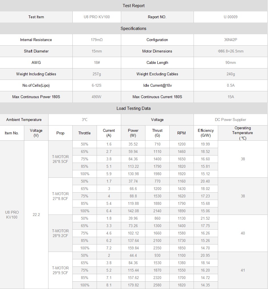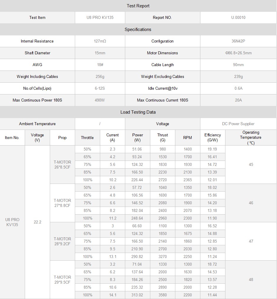 T-MOTOR U8 Lite L KV110 High-Efficiency UAV Motor with 11kg Max Thrust
