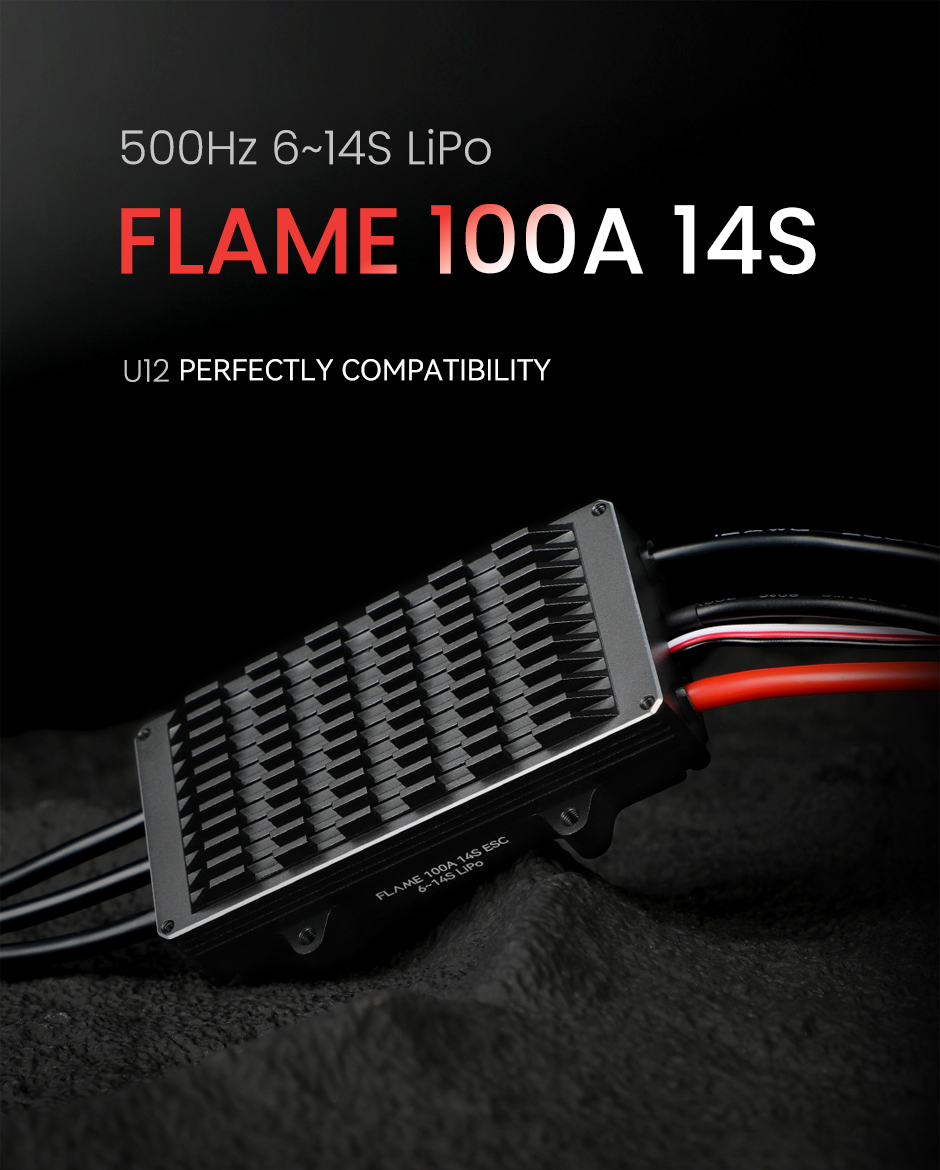 T-MOTOR FLAME 100A 14S ESC delivers 100A continuous and 120A peak power (10s) for multi-rotor UAVs. Compatible with U12 motors and 6-14S LiPo, it features efficient heat dissipation, IP55 waterproofing, and up to 600Hz throttle precision. Built with durable aluminum CNC housing and optimized for low power consumption, it ensures reliable performance in demanding conditions.