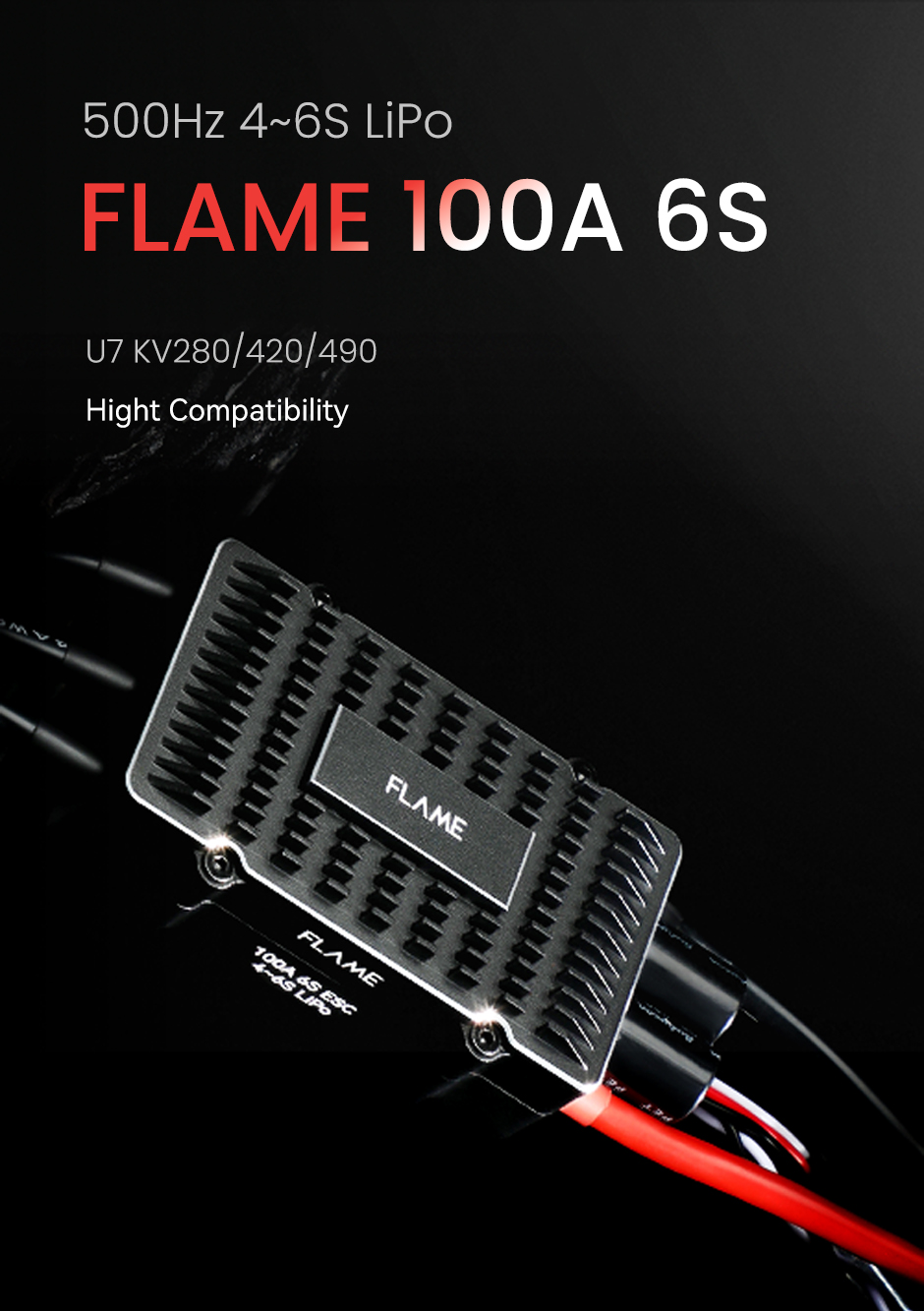 T-MOTOR FLAME 100A 8S ESC delivers 100A continuous and 120A peak power (10s) for multi-rotor UAVs. Compatible with U12 motors and 4-6S LiPo, it features efficient heat dissipation, a durable CNC aluminum case, and IP55 waterproof/dustproof protection. Optimized for disc motors, it supports up to 600Hz throttle signals, ensuring precise and reliable performance in demanding environments.