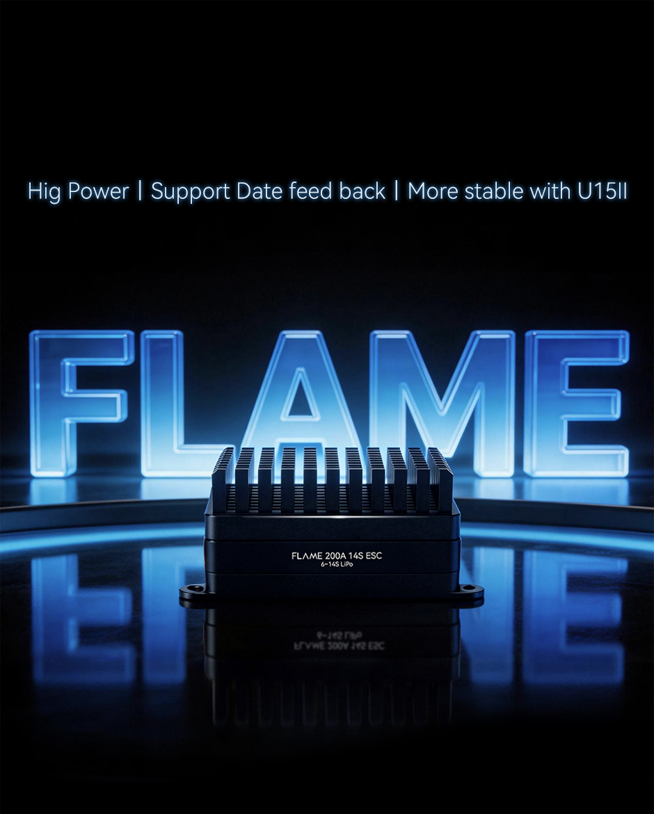 T-MOTOR FLAME 200A 14S ESC is designed for high-performance multi-rotor UAVs, offering a continuous current of 200A and peak current up to 240A (10s). Compatible with U12 motors, it supports 6-14S LiPo batteries and ensures efficient heat dissipation with its layered structure. Key features include real-time data feedback and essential protections for start-up, overload, motor lock-up, and throttle signal loss. Perfect for demanding flight conditions, this ESC combines power, reliability, and safety for advanced UAV systems.