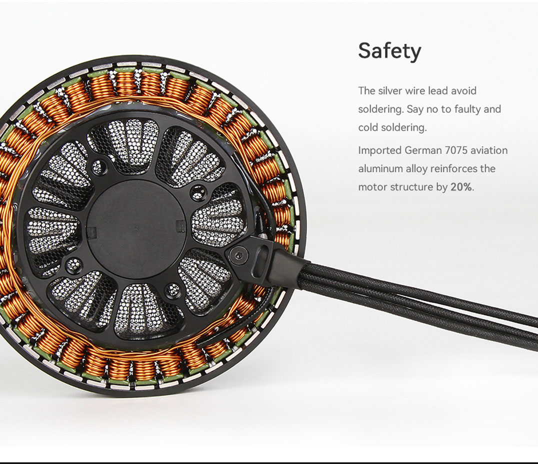 Lightweight design allows you to fly longer, Industrial-grade dustproof and waterproof and anti-aging, greatly extends the working life of the motor. Curved magnets with precise tolerance control and rational magnet space for optimal motor magnetic circuit help improve motor performance. The motor uses imported customized bearings to extend the service life of the motor and ensure smooth flight and longer flight time.