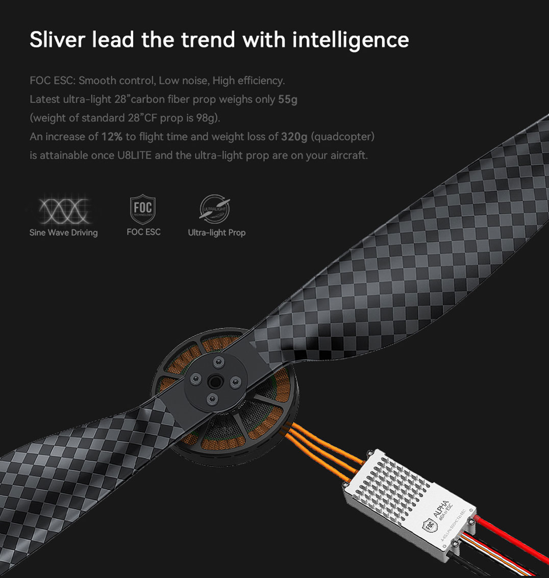 | Peak Current(180s) | 29.3A | Octocopter(28CF) | 28kg |